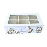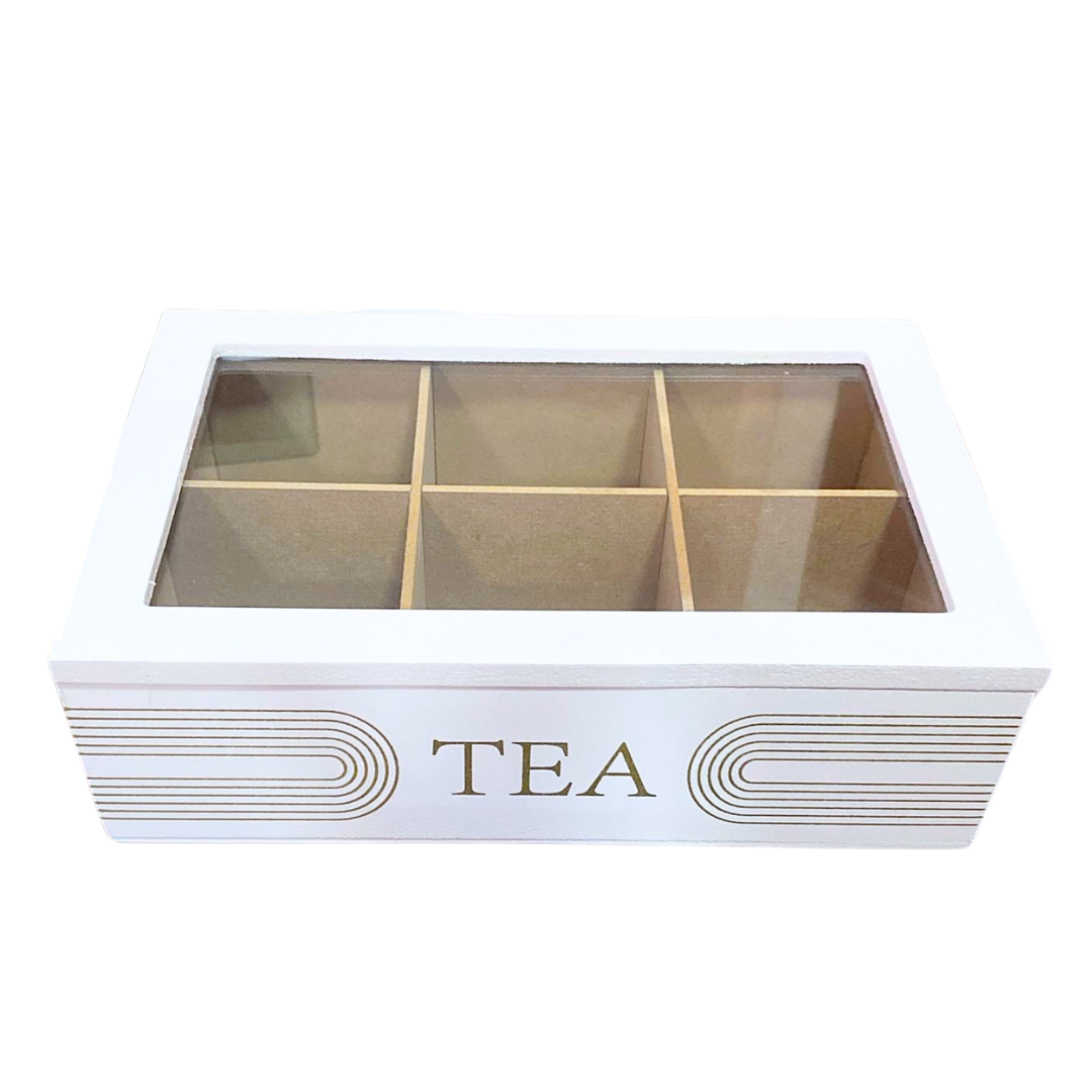 Organiza tu colección de té con estilo y practicidad 🌸. Esta caja de madera con tapa cuenta con 6 compartimientos internos, perfectos para clasificar tus bolsitas de té y mantenerlas frescas y listas para disfrutar 💖✨.