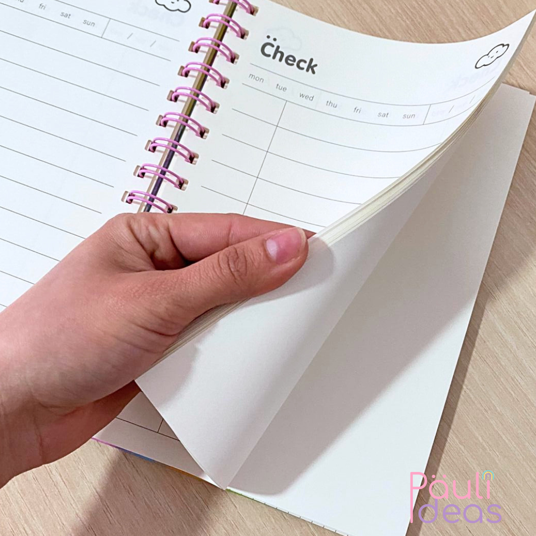 Organiza tu rutina con estilo y encanto kawaii 💖🌸. Este planificador A5 (21 x 14.5 cm) incluye 64 hojas de 100 g/m², perfectas para escribir, planear y crear sin límites.