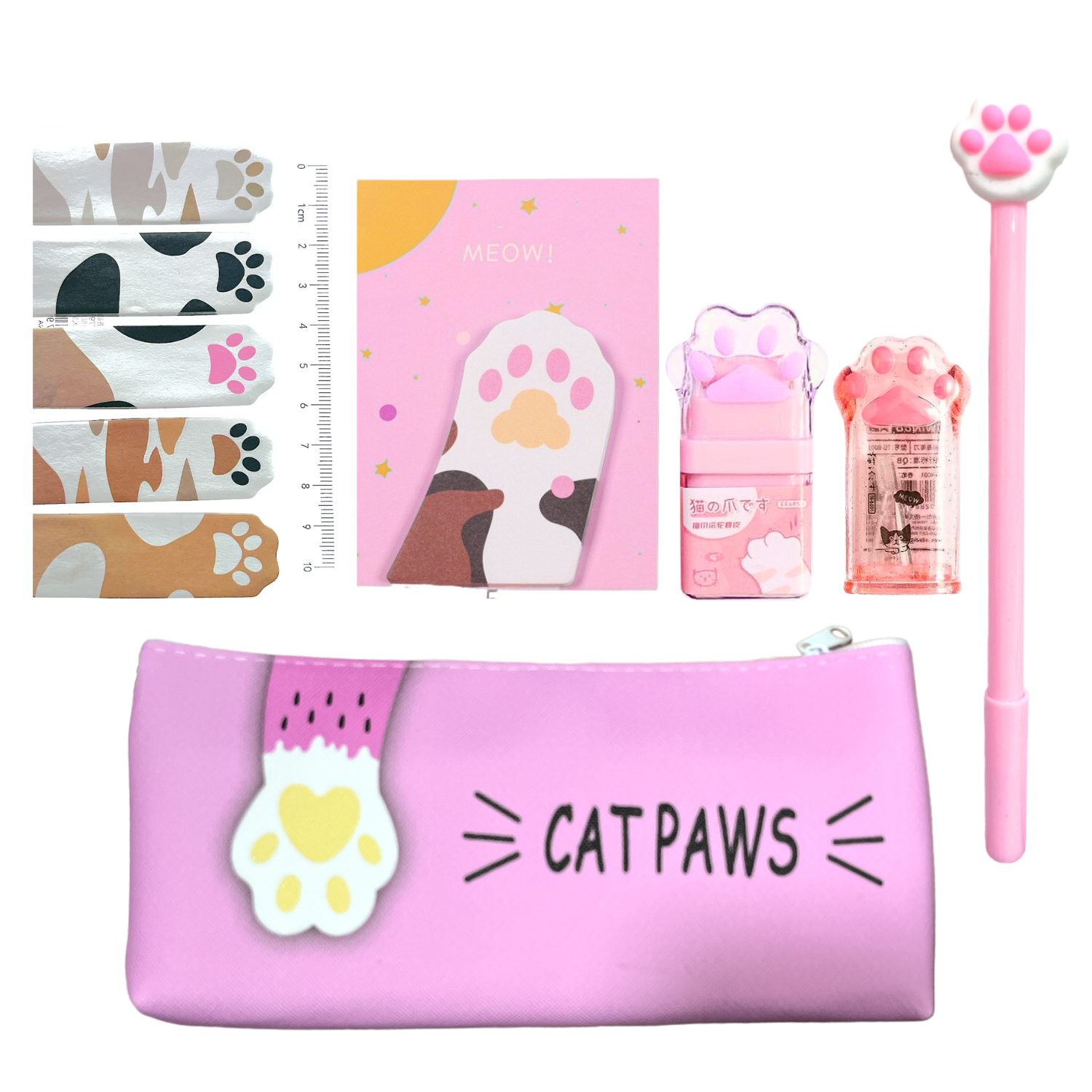 ¡Decora tu escritorio con este adorable set de estuche y papelería kawaii! Con diseños de tiernos gatos, paltas y cactus, este set es perfecto para organizar y tener todo lo necesario para tus tareas y notas.