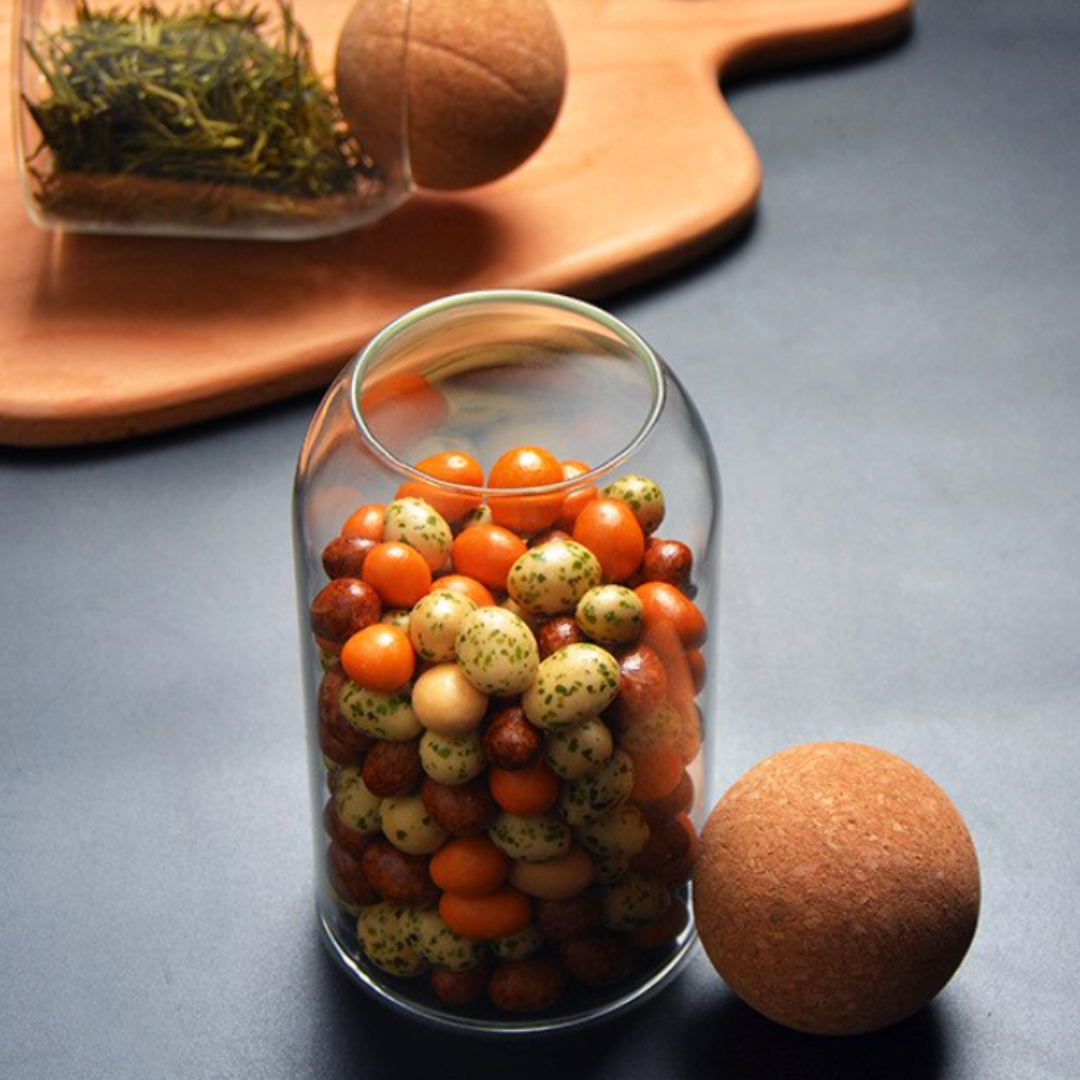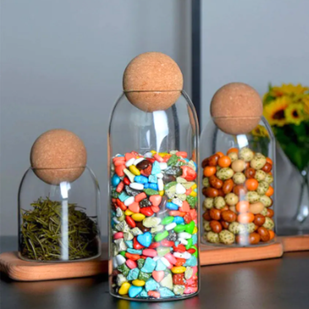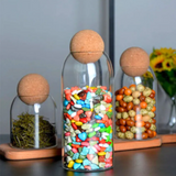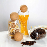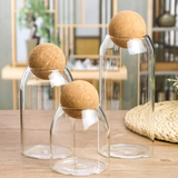 Contenedor De Vidrio Tapa De Corcho Esférica Set 3 Frascos