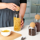 Mantén tus alimentos frescos y organizados con este pack de 3 frascos de vidrio herméticos 🌿✨. Cada tapa de corcho natural protege tus ingredientes de la humedad y el aire, ¡ideal para granos, cereales, especias o galletas!