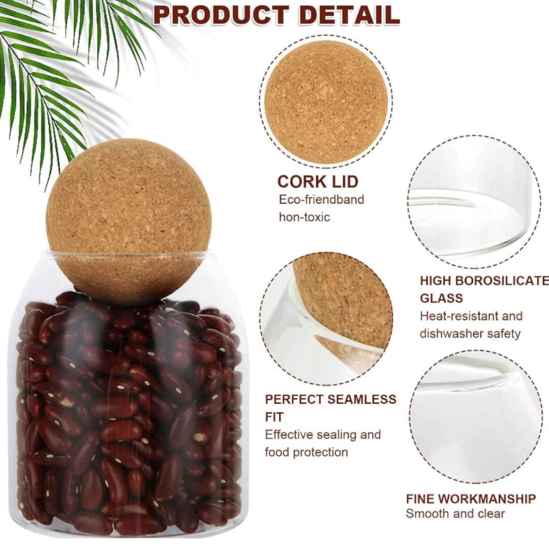 Tarros de Vidrio Hermético con Tapa de Corcho – Pack x3 🥖🍪