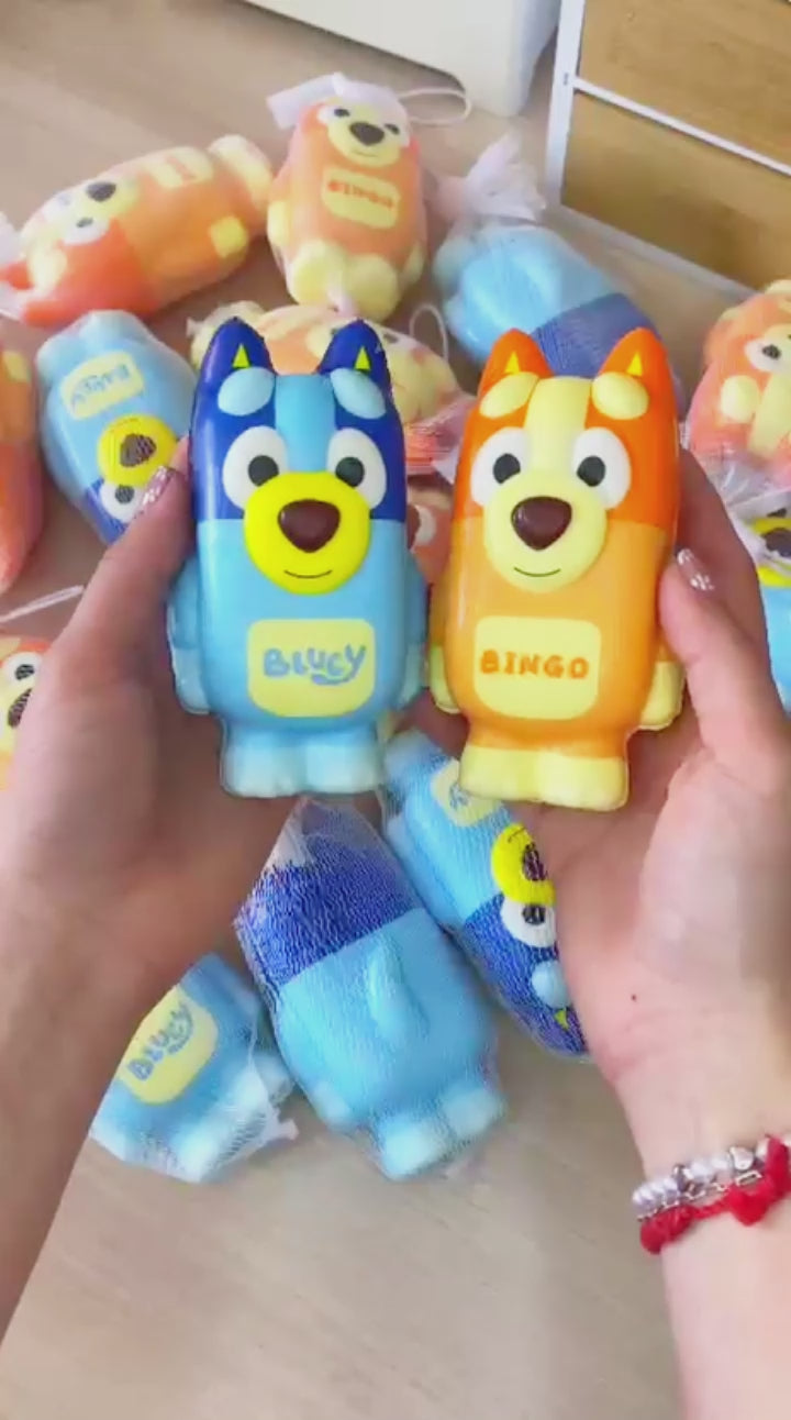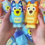 ¡Relaja y diviértete con este Set de 2 Juguete Squishys Antiestrés con diseño de Bluey y Bingo! Hechos de goma suave de 10 cm y con un delicioso olor a frutilla, perfectos para aliviar el estrés y jugar en cualquier momento.