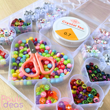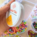 Este lindo kit incluye 22 compartimientos con cuentas de diferentes colores, formas y tamaños, 1 rollo de hilo elástico Crystal Tec y 1 tijera segura, perfecto para pequeñas diseñadoras que aman las manualidades.