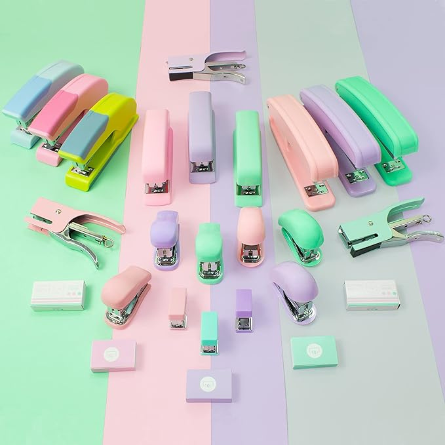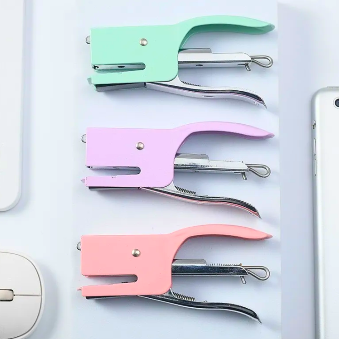 ¡Organiza tus documentos con estilo kawaii! Esta grapadora en tonos pastel tipo macaron es práctica, compacta y perfecta para darle un toque adorable a tu escritorio.