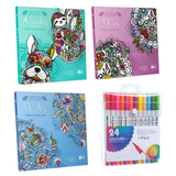 ¡Dale vida a tus creaciones artísticas con este increíble Box Regalo Set! Incluye 3 libros de mandalas únicos y 24 lápices de doble punta para darte una amplia gama de colores para elegir.